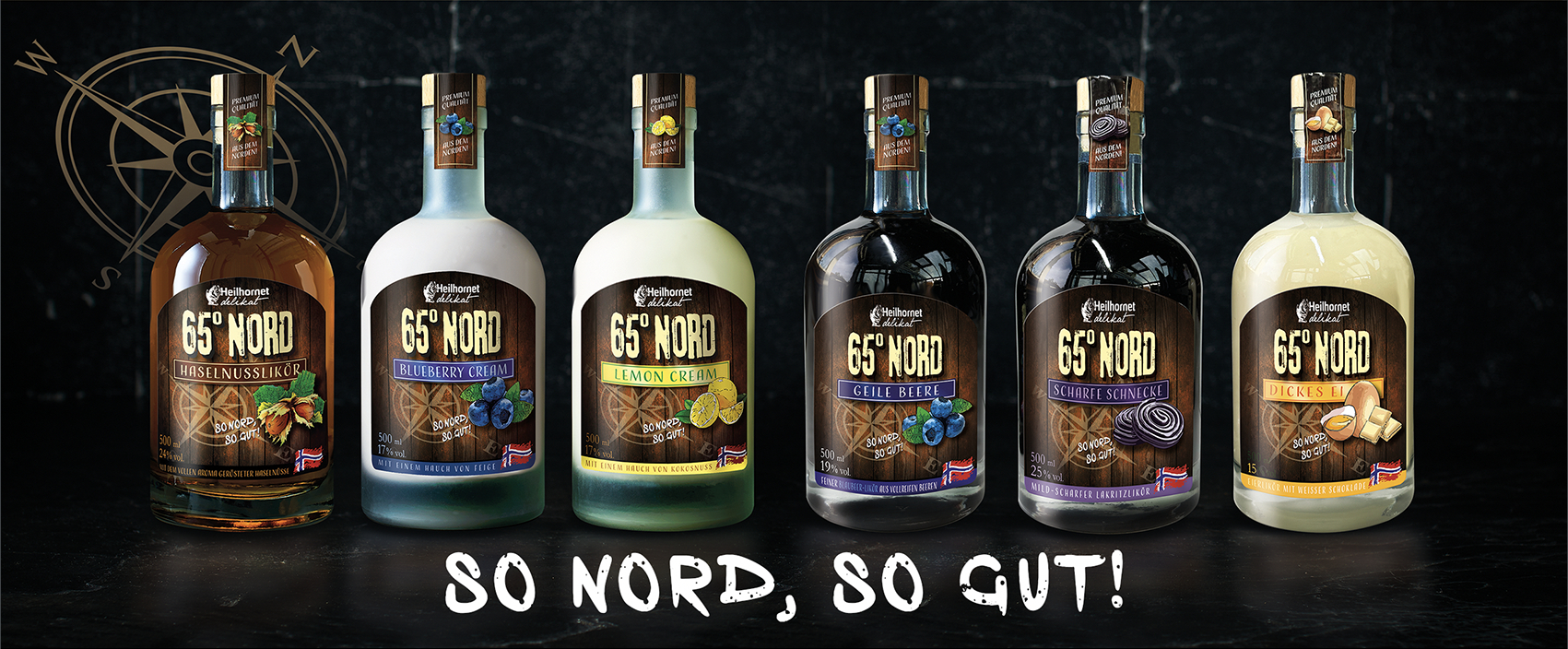 Unsere 65° Nord Likörspezialitäten bieten für jeden Geschmack das Richtige. Ob der cremige Genuss unseres Dickes Ei Likörs, die fruchtige Note des Blueberry Cream, oder der frische Kick des Lemon Cream – hier wird jeder fündig.